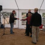 Pentti ja Marjatta Ahoa muistettiin kukkasin kaikesta siitä väsymättömästä talkootyöstä, jota he tekevät.